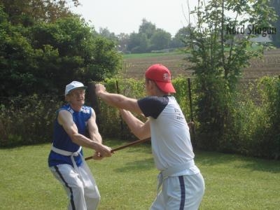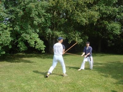 A notre arrivée (9h30), par une très belle matinée ensoleillée, c’est le petit déjeuner qui nous attend ; après quoi, nous avons entamé la journée par du Jo (un bâton de taille moyenne, n’hésitez pas à consulter le lexique du site pour plus de détails sur les termes techniques).